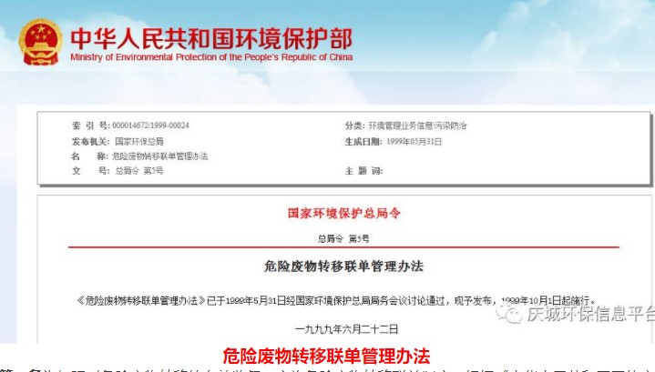 《危險(xiǎn)廢物轉(zhuǎn)移聯(lián)單管理辦法》于1999年5月31日經(jīng)國(guó)家環(huán)境保護(hù)不會(huì)議討論通過(guò),自1999年10月1日起施行。危險(xiǎn)廢物轉(zhuǎn)移聯(lián)單通常是指危險(xiǎn)廢物轉(zhuǎn)移聯(lián)單,涉及危險(xiǎn)廢物產(chǎn)生單位、接受單位、運(yùn)輸單位、產(chǎn)生單